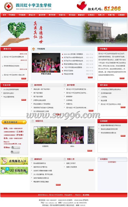 四川紅十字衛生學校是由四川省衛生廳、成都市教育局審批、四川省教育廳備案、四川省民政廳登記成立,是一所全日制普通中等衛生類職業學校,學校占地100余畝,校舍總建筑面積13000平方米,地處成都龍泉驛區,風景優美,是一所能為學生提供良好學習和生活條件的園林式學校。