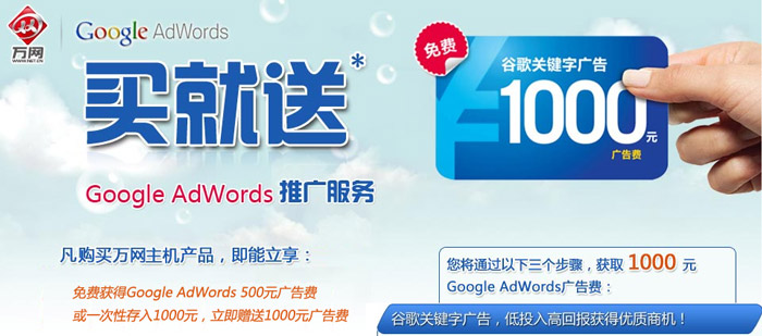 購萬網主機贈送google廣告費用--“Google AdWords買就送”活動參與指南,詳情點擊:http://www.gushai.cn/faq/zhuji/20110905122222.html